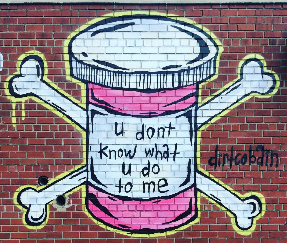 Dirt Cobain: I’d really like to answer that question. I’ve struggled with drinking, drugs and partying. So it’s something that has always been a part of my life. When I do this art, I’m doing it for myself as a way of dealing with it. I’m trying to put a fun twist on a dark topic, because when I say ‘U Get Me So High’, that’s a representation for anything. That could be love, life, sex, music. It could be drugs or alcohol or whatever. But all I do is present the art with my internal vision of it and the way others embrace it, that’s on them. That’s what I want to do as an artist: creating art that’s open for people’s interpretation. I really don’t promote drugs. I’m just drawing pill bottles, whatever you think is up to you.